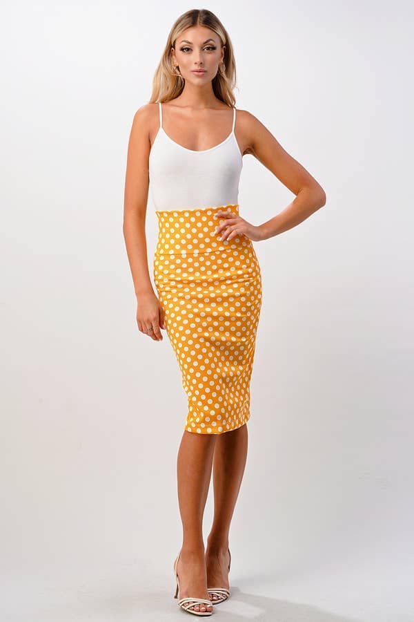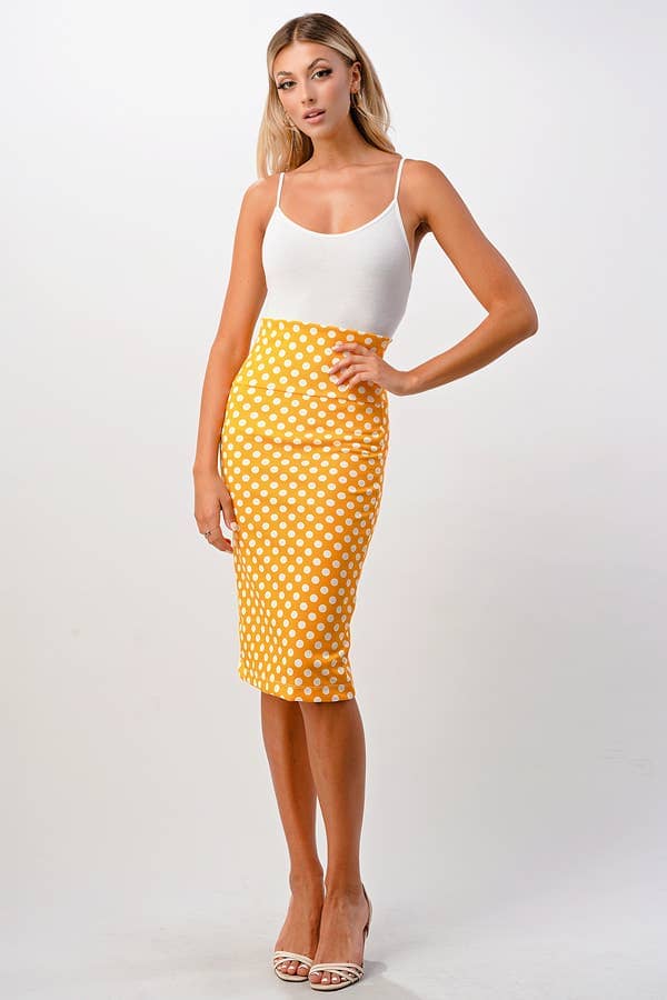 Step into a world of playful sophistication with our Polka Dot Pencil Skirt in a vibrant yellow hue. Guaranteed to brighten your day, this skirt is perfect for adding a pop of color to your wardrobe. Its timeless polka dot print makes it a versatile piece that can take you from a casual brunch to an evening out with friends. Curated by A Whole World of Good, this skirt is a testament to our commitment to bringing you stylish and practical pieces.